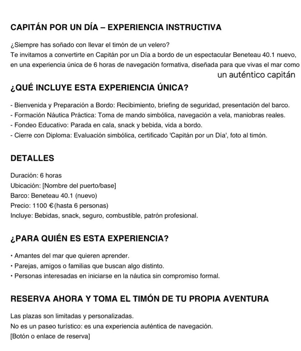 CAPITÁN DE BARCO POR UN DÍA