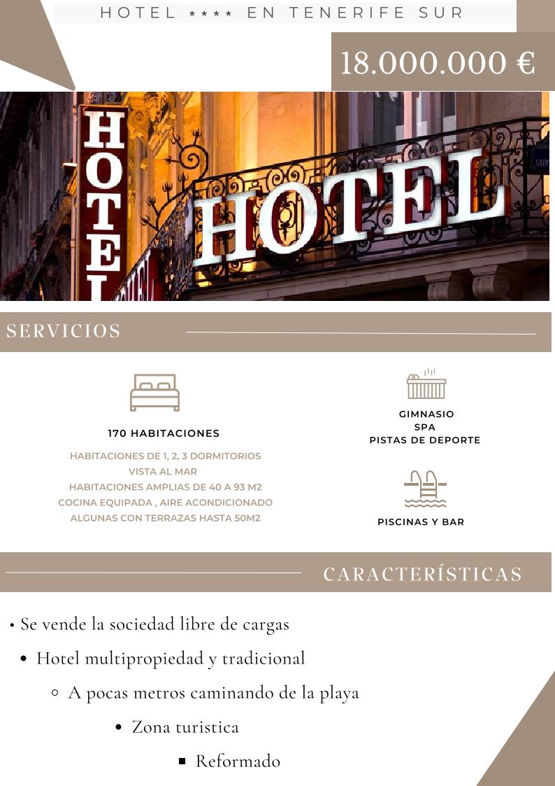 A la venta Hotel en Tenerife Sur Reformado y libre de cargas