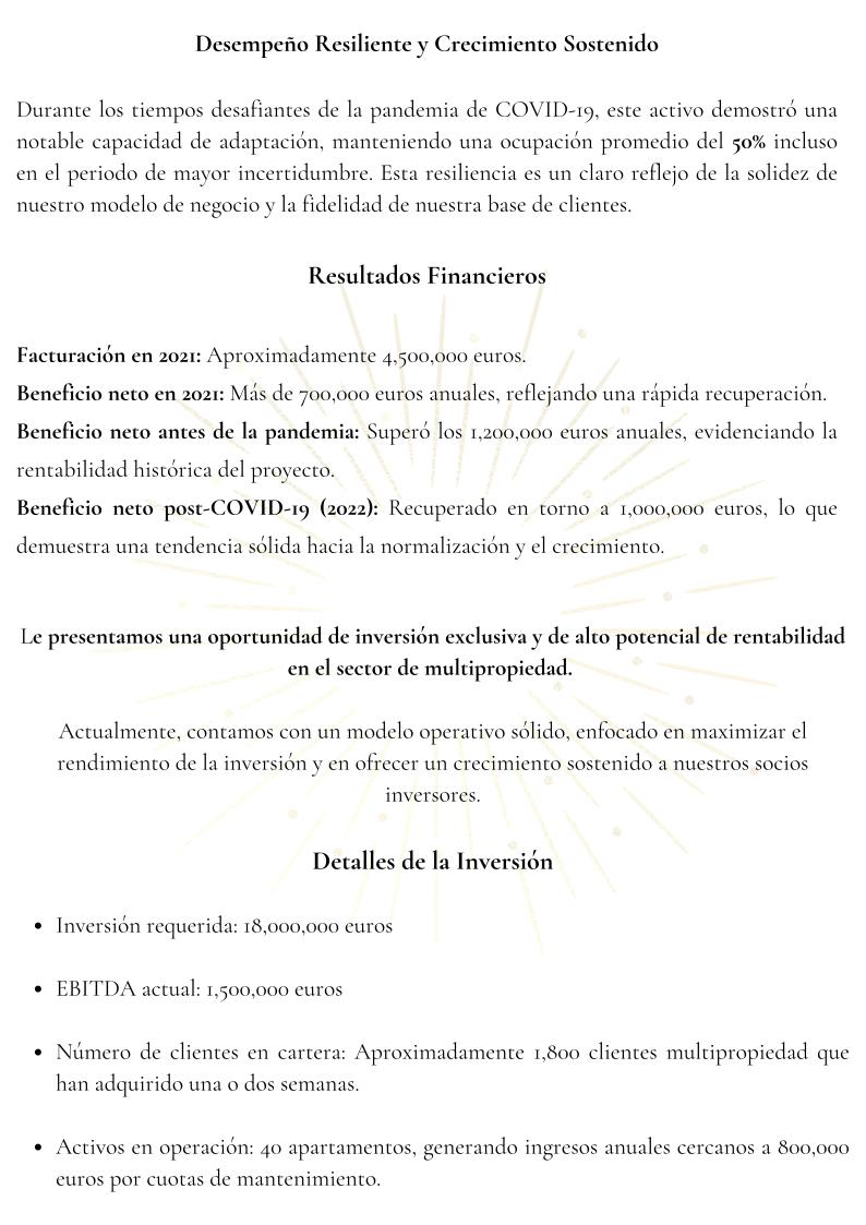 Le presentamos una oportunidad de inversión exclusiva y de alto potencial de rentabilidad en el sector de multipropiedad.
